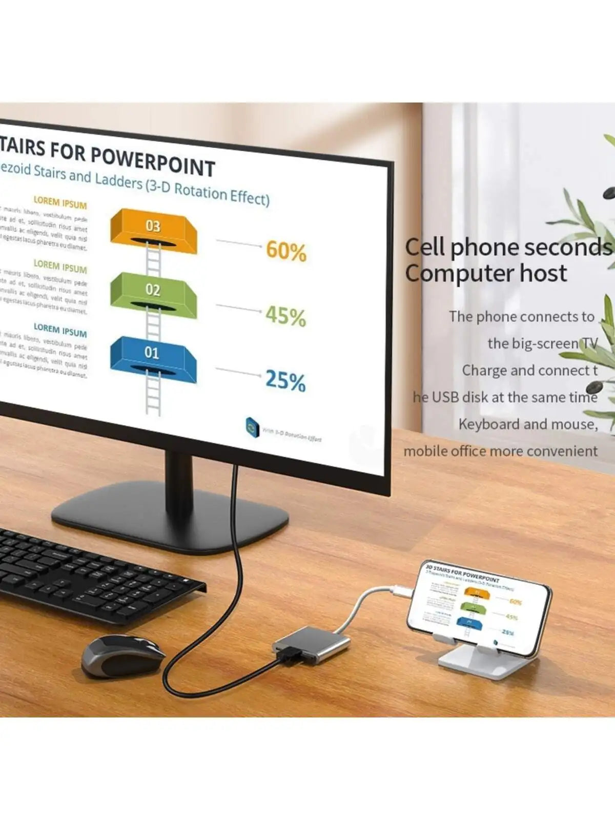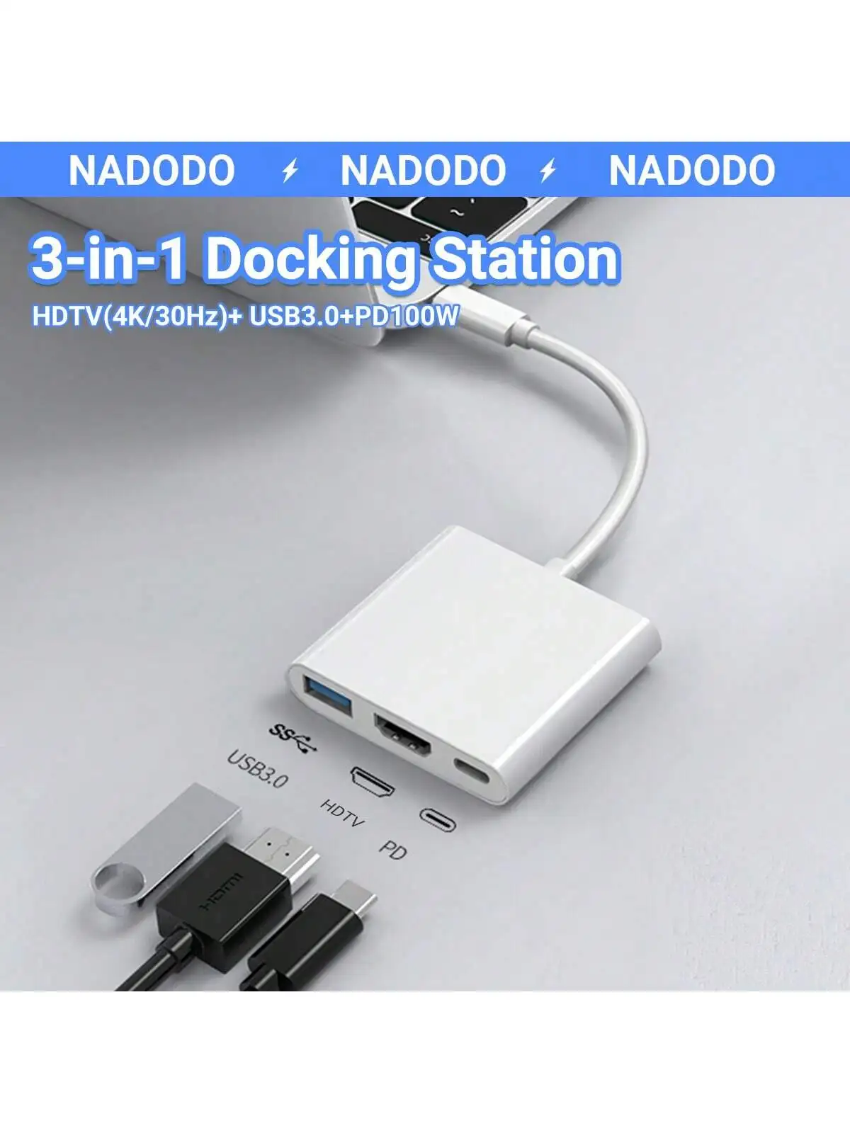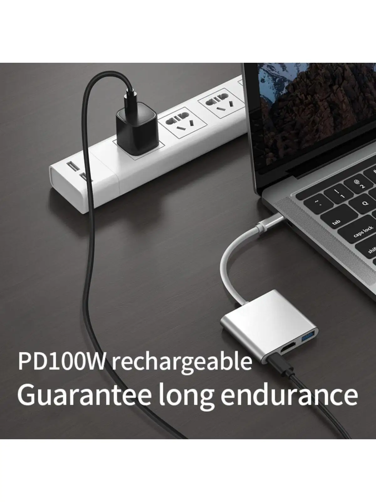 3-em-1 3.0 USB USB C para HDMI Hub Adaptador Multi Porta Tipo-C Hub 100W Porta de Carregamento Rápido