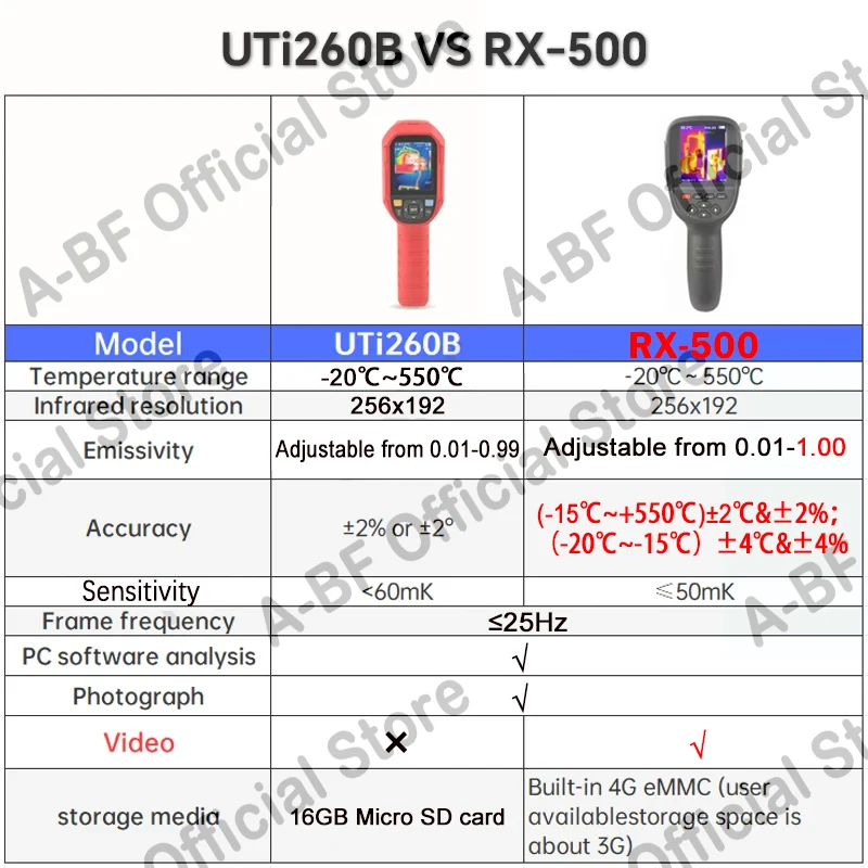 RX-500 and UTi260B comparison chart