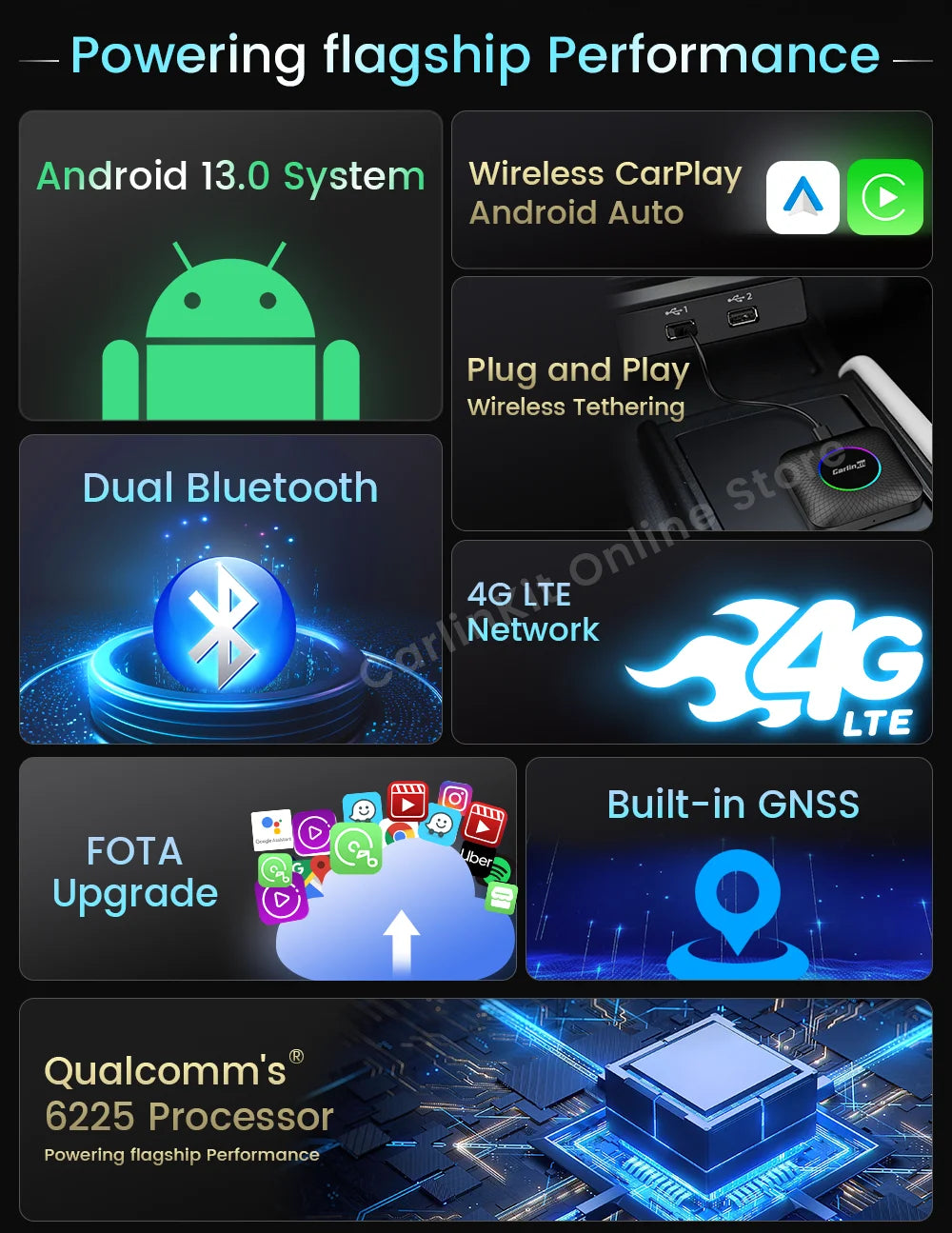 Carlinkit Android 13 Tv Box 6225 LED Wireless Android Auto CarPlay Wireless Adapter Support Youtube Netfilx IPTV Spotify GPS
