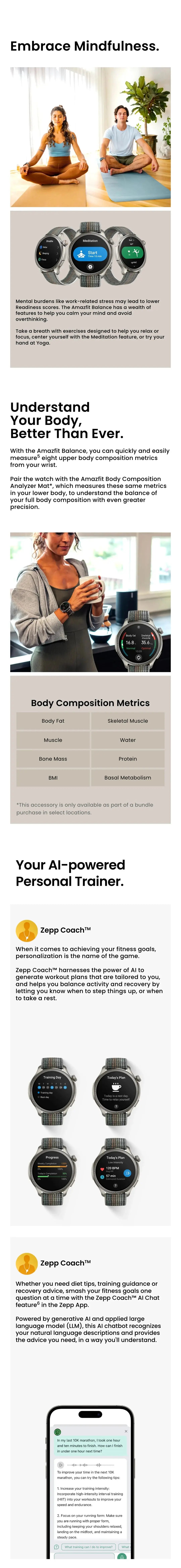Amazfit Balance Smart Watch 46mm with Body Composition & Health Analysis, Sleep Recovery, GPS, Alexa Built-In, Bluetooth Calling, 14-Day Battery Life, 150+ Sports Modes, for Android iPhone