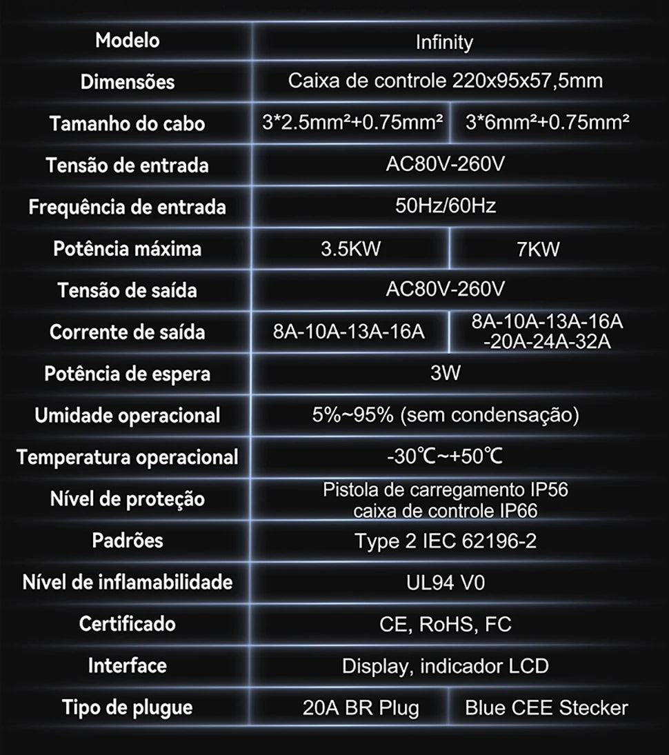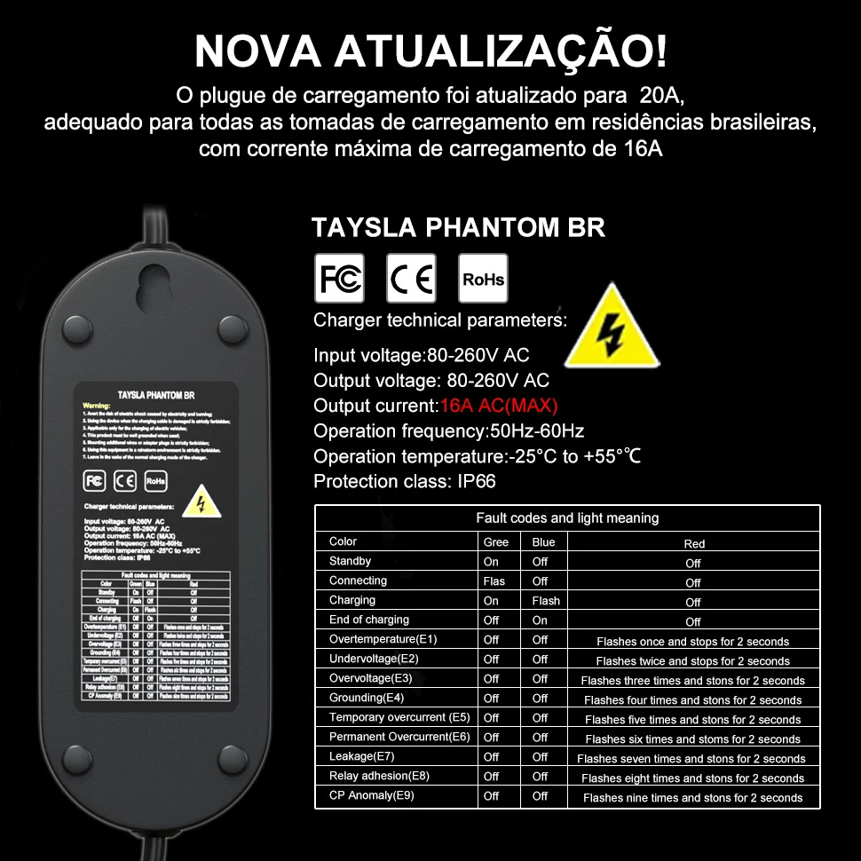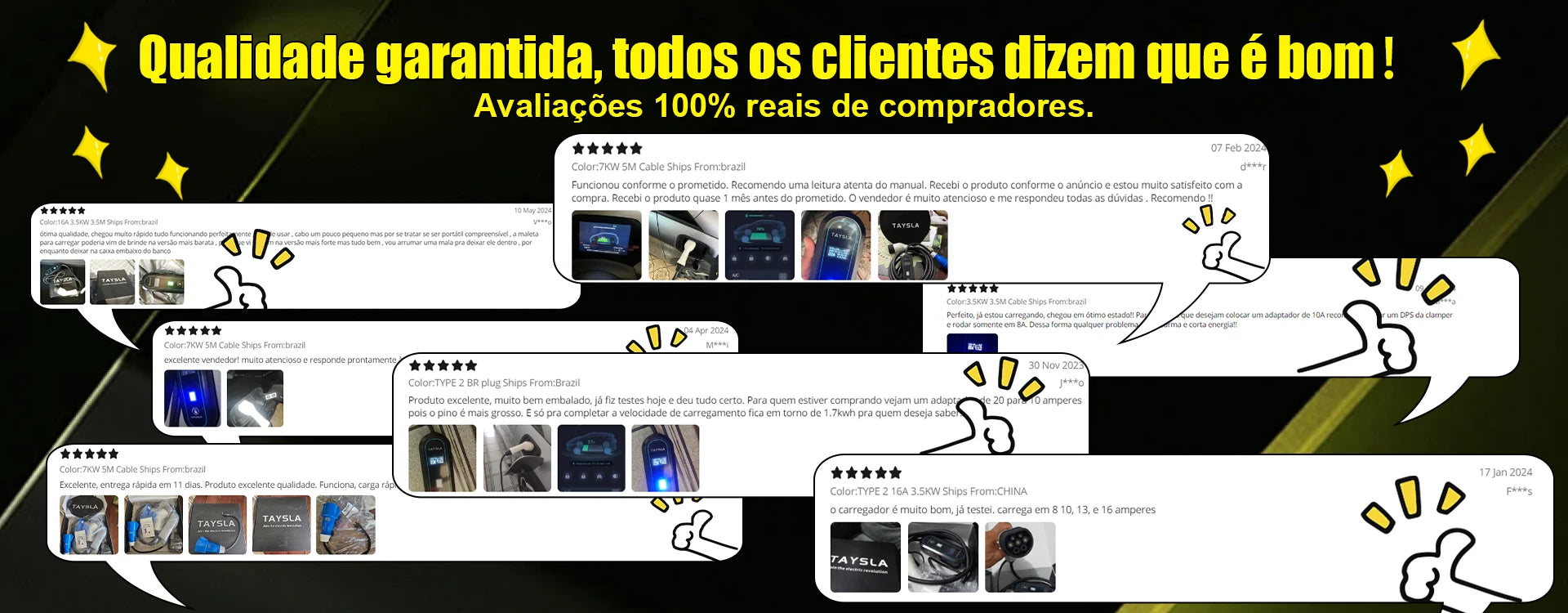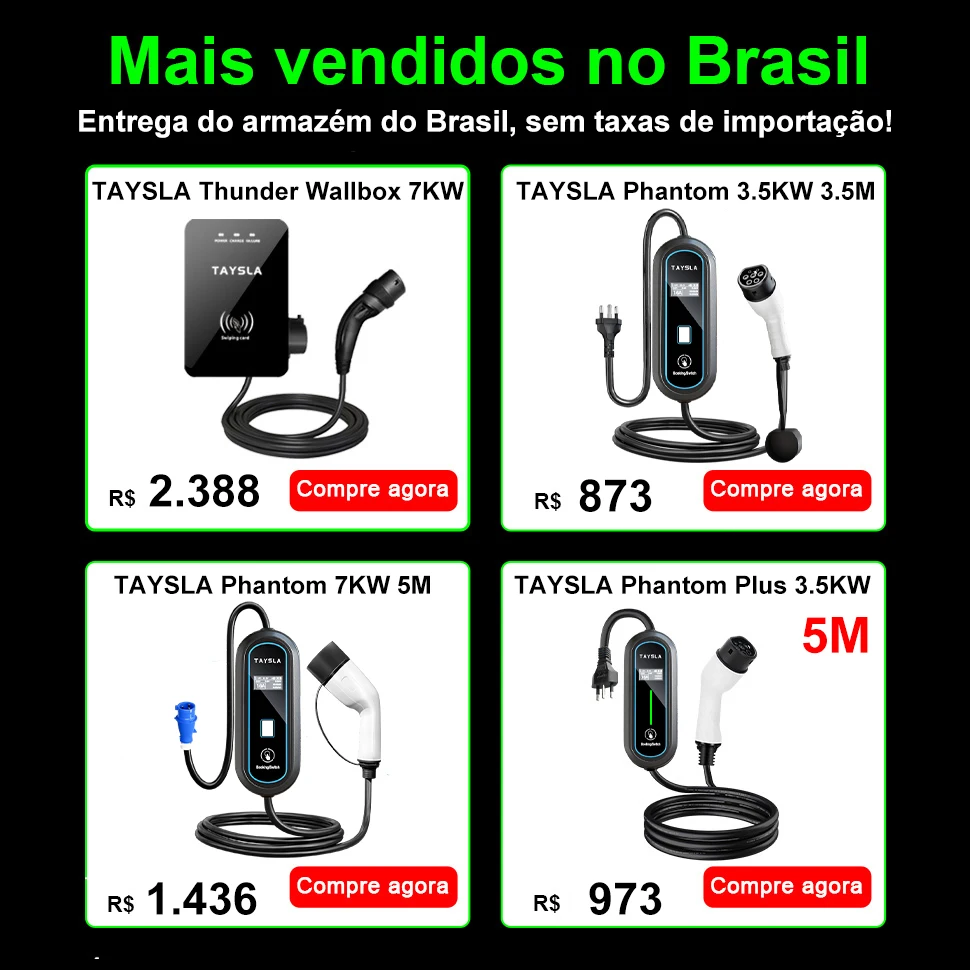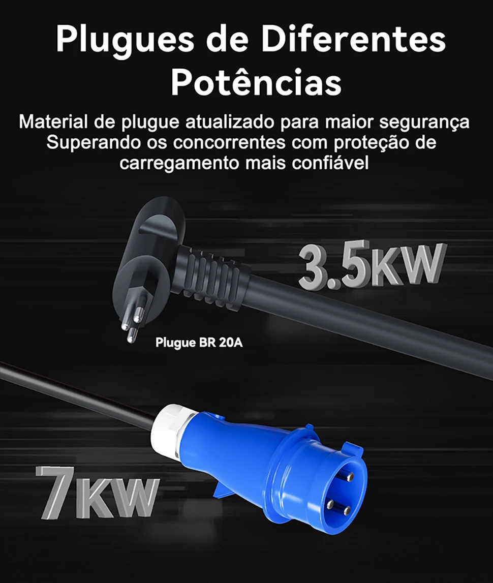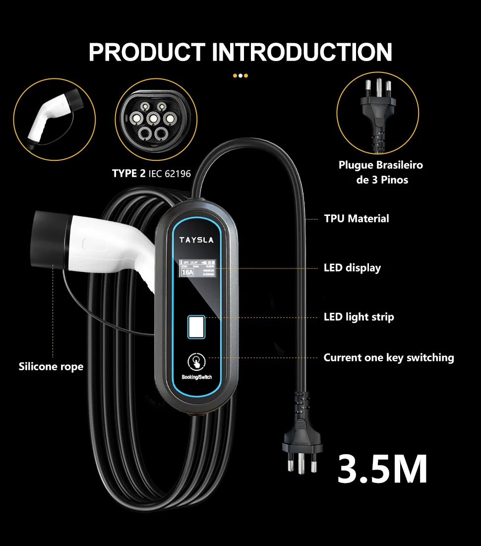 5. Broad Compatibility: Compatible with all electric vehicle brands and models in Brazil, including BYD Dolphin, BYD Song Plus PHEV, BYD Yuan Plus EV (Atto 3), Great Wall Motors ORA Cat, Volkswagen ID.4, Nissan Leaf, Chevrolet Bolt EV, Renault Zoe, BMW i3, and Tesla Model 3, etc, ensuring convenient use.