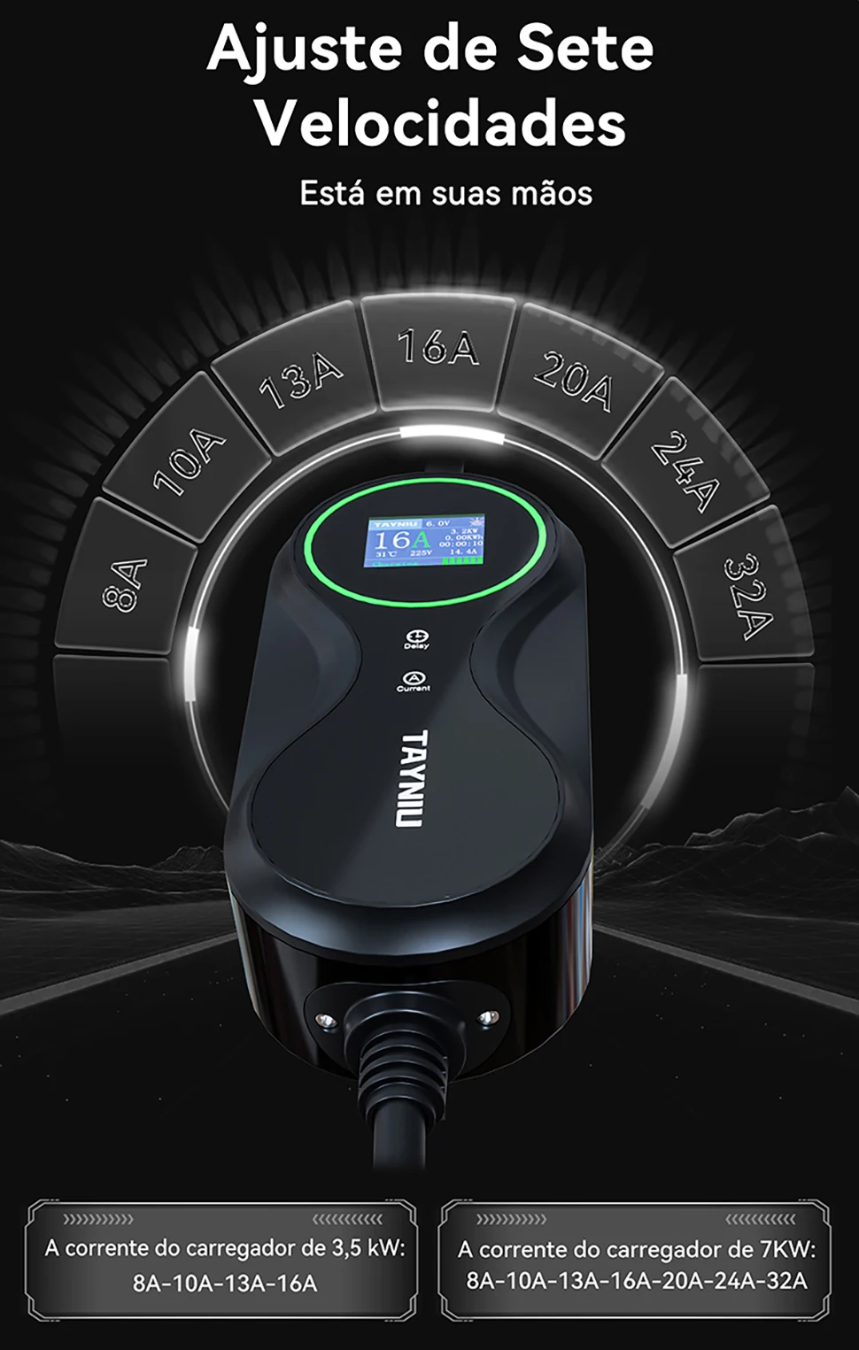 TAYNIU Electric Car Charger 3.5KW 7KW with APP Portable EV Charger Type 2 16A 80V-260V BR Plug Charging Cable 5M for all EVs