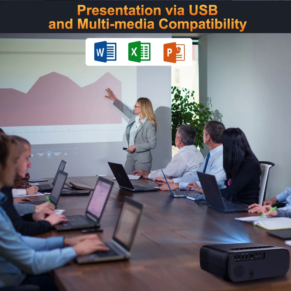 Wide Compatibility projector designed with HD, USB, AV, 3.5mm audio interface