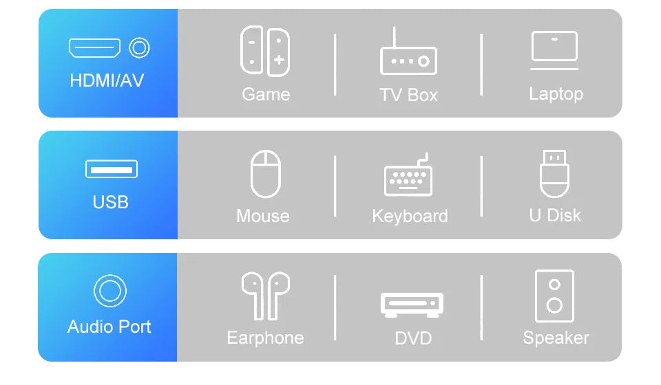 Input/Output: 3.5mm Earphone Out,HDMI,POWER,USB